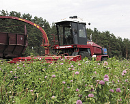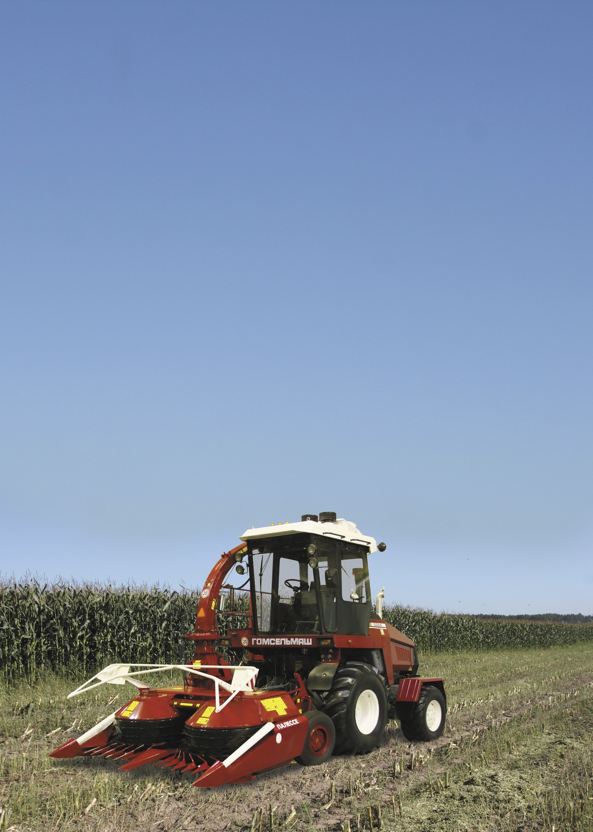 - Жняярка для грубасцябловых культур здольная ўбіраць кукурузу любой вышыні і ўраджайнасці, незалежна ад схем і спосабаў пасева. Раўнамерны зрэз забяспечваецца сістэмай капіявання рэльефу і наладам вышыні зрэзу. Сцеблы кукурузы падаюцца ў сілкавальны апарат ніжняй часткай, што прадухіляе страты катахаў. Бакавыя падзяляльнікі падзяляюць расліны на краі загонкі і падымаюць палеглыя расліны.