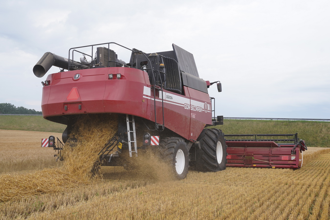 Камбайн GS2124 на паўгусенічнам хаду падыходзіць на працу ў складаных умовах: падчас зацяжных дажджоў, дрэннай праходнасці і нізкай апорнай здольнасці глебы.